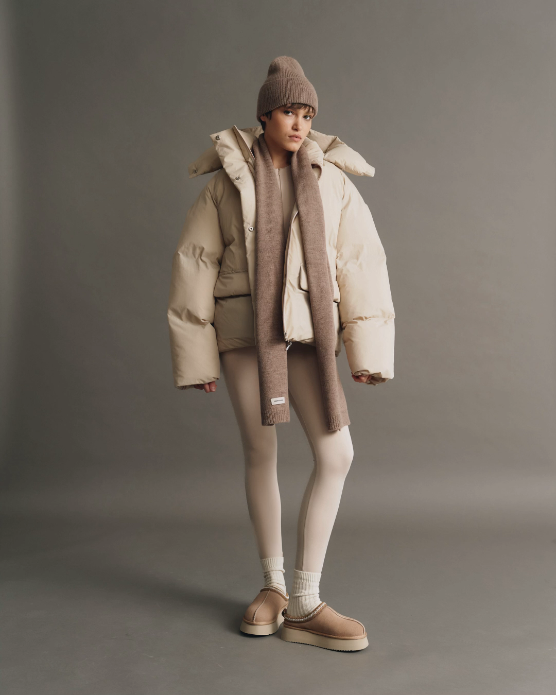 Пуфер ковдра в коричневому кольорі
