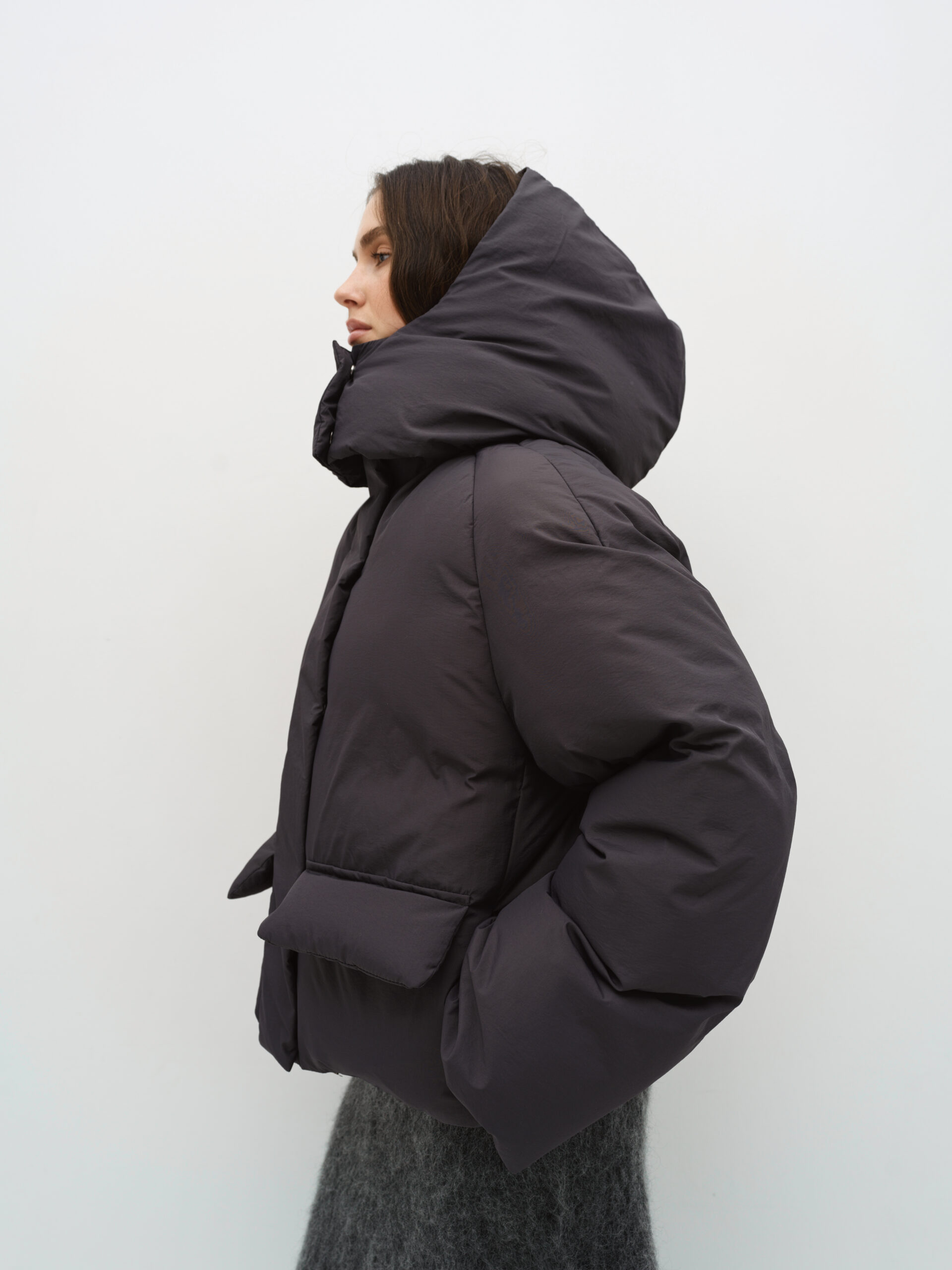 М’який пуфер oversize в шоколадному кольорі