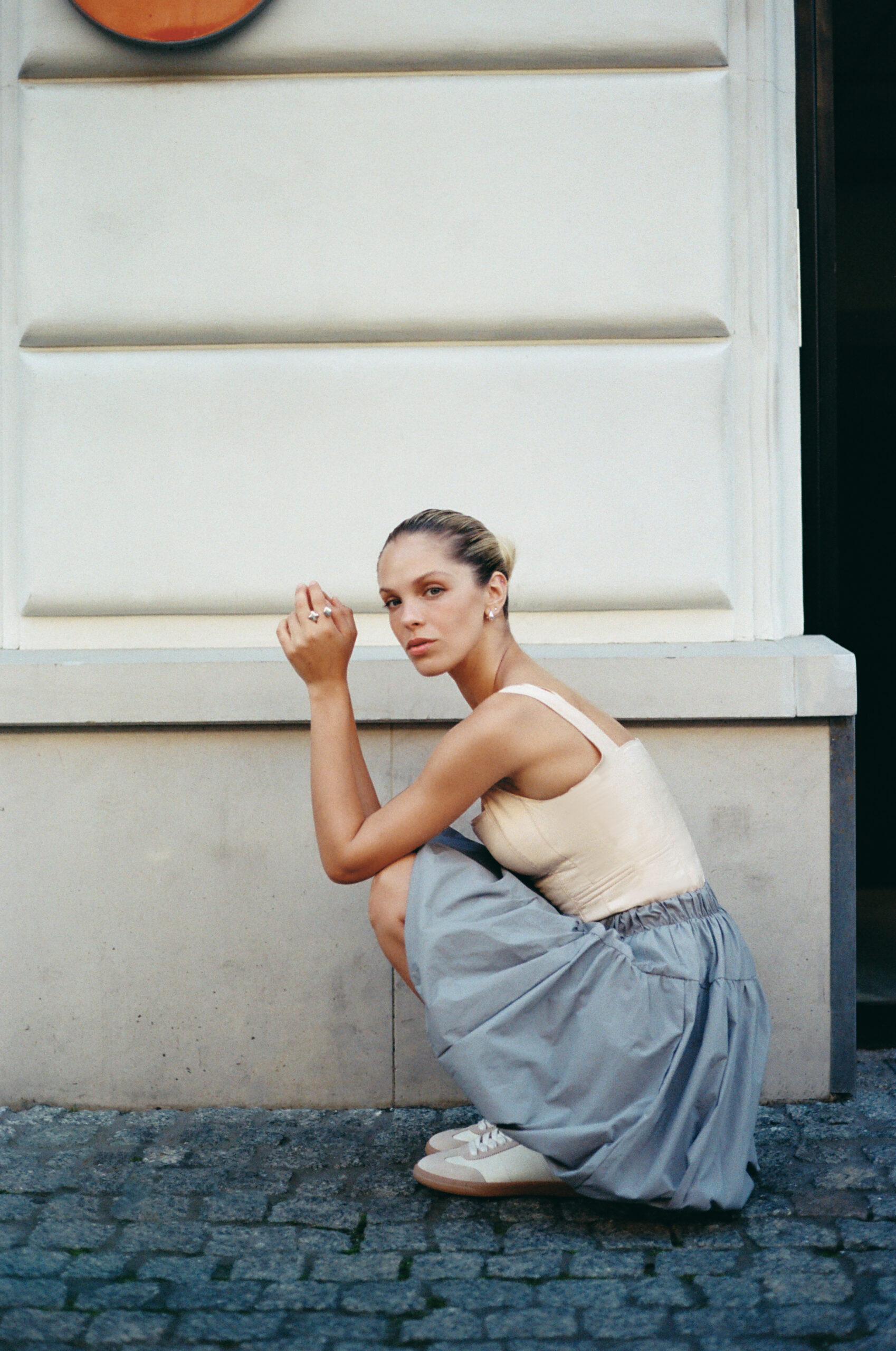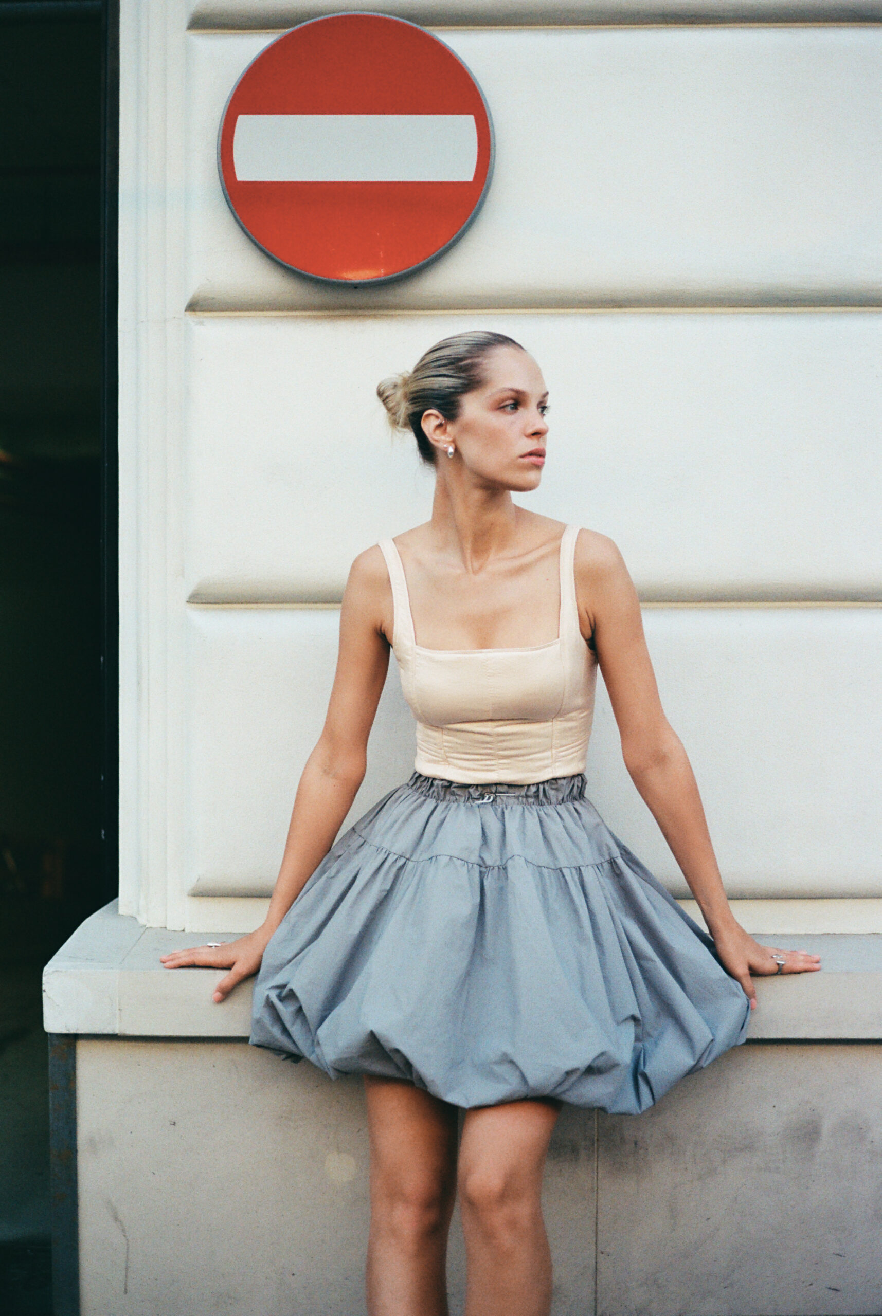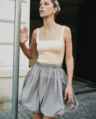 Спідниця на кулісці з кишенями, срібний фіксатор, має дві бічні кишені без застібки.