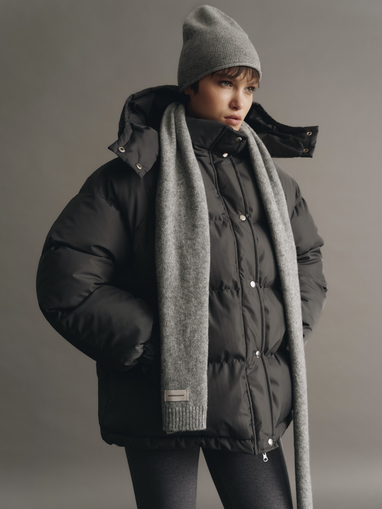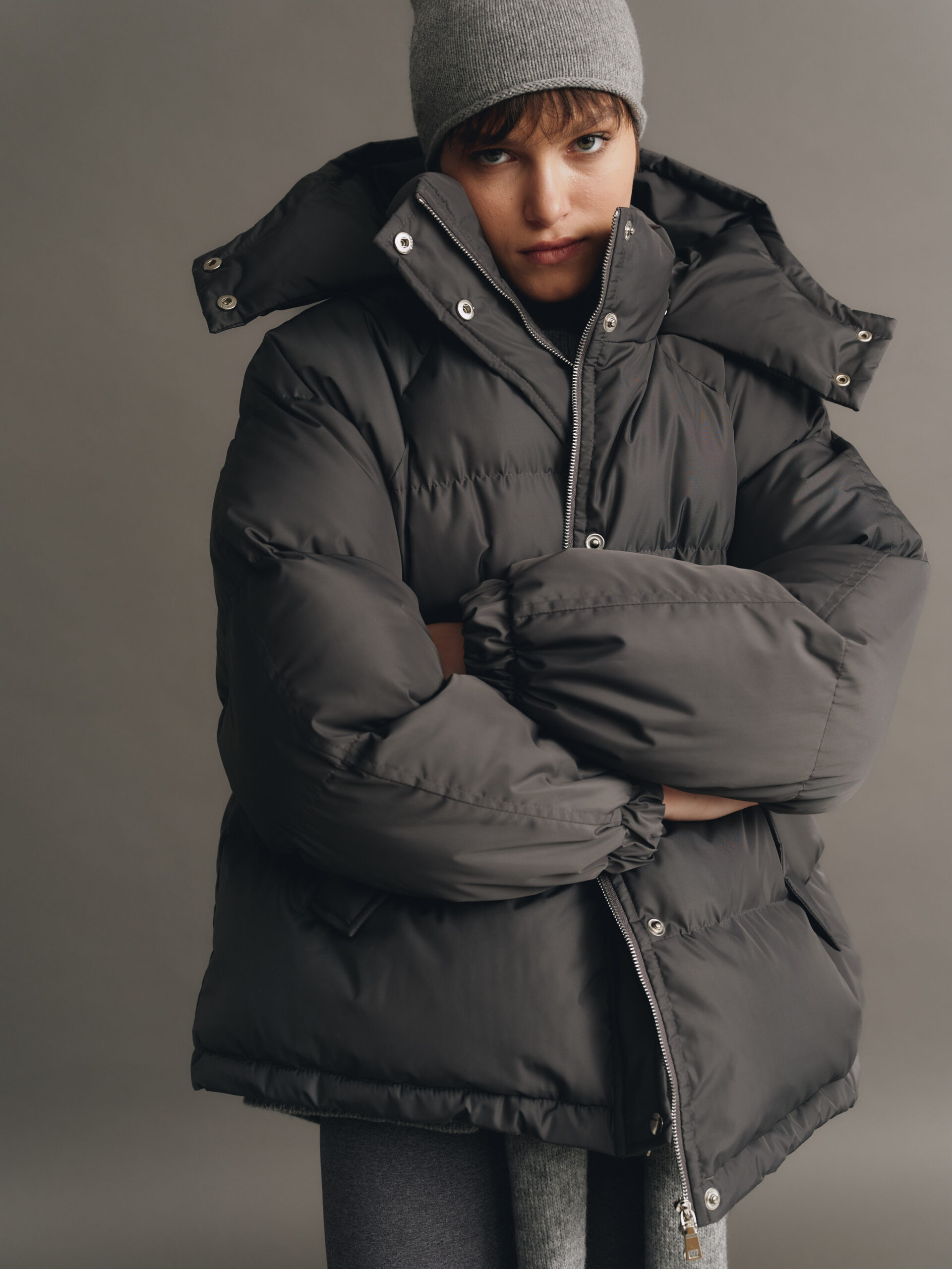 Об’ємний пуховик з капюшоном, який відстібається, пуховик на блискавці та кнопках, має дві бічні кишені. Температурний режим -20°C, наповнювач біопух, легкий і теплий, гіпоалергенний. На моделі розмір s/m при зрості 174 см