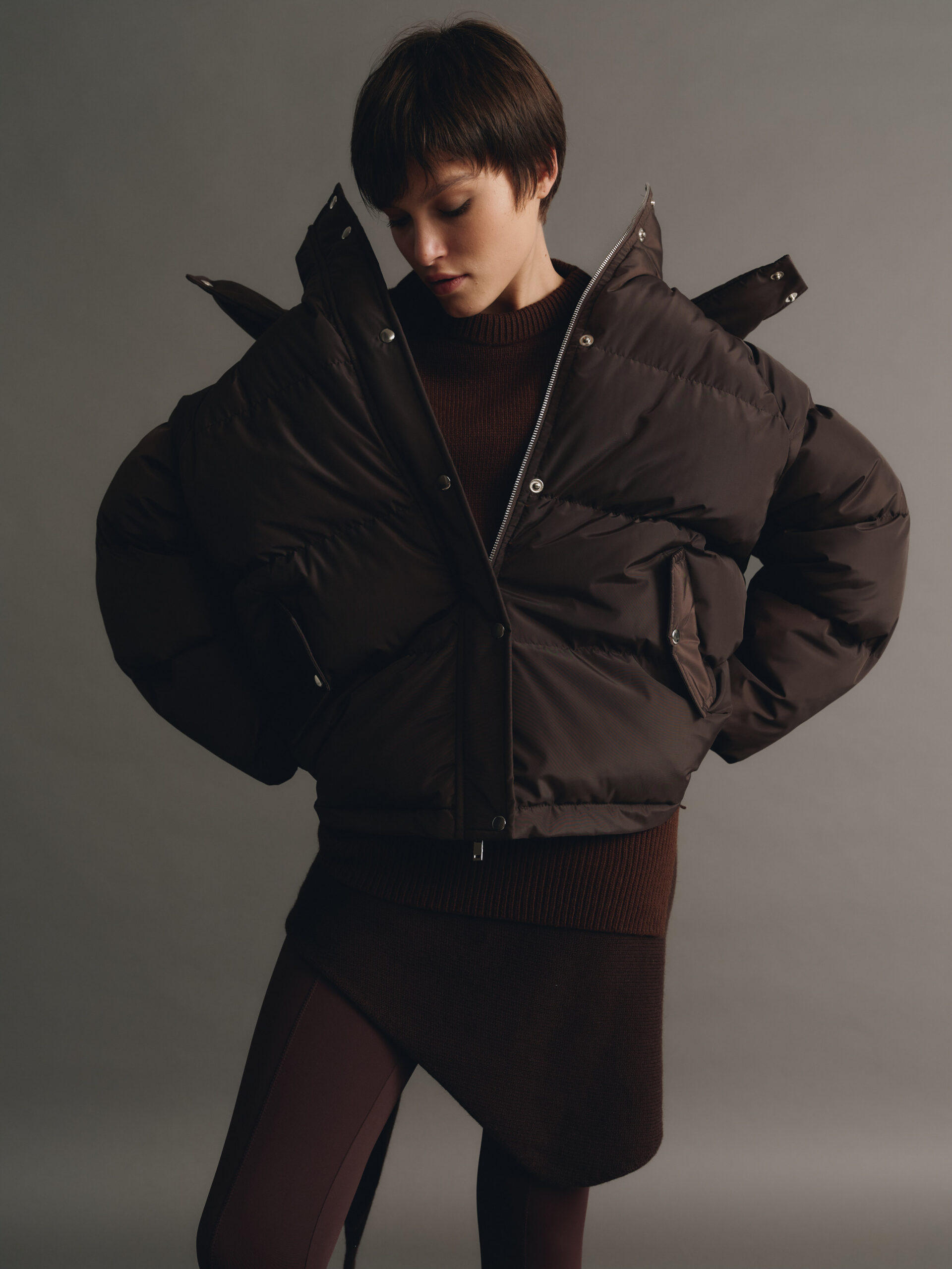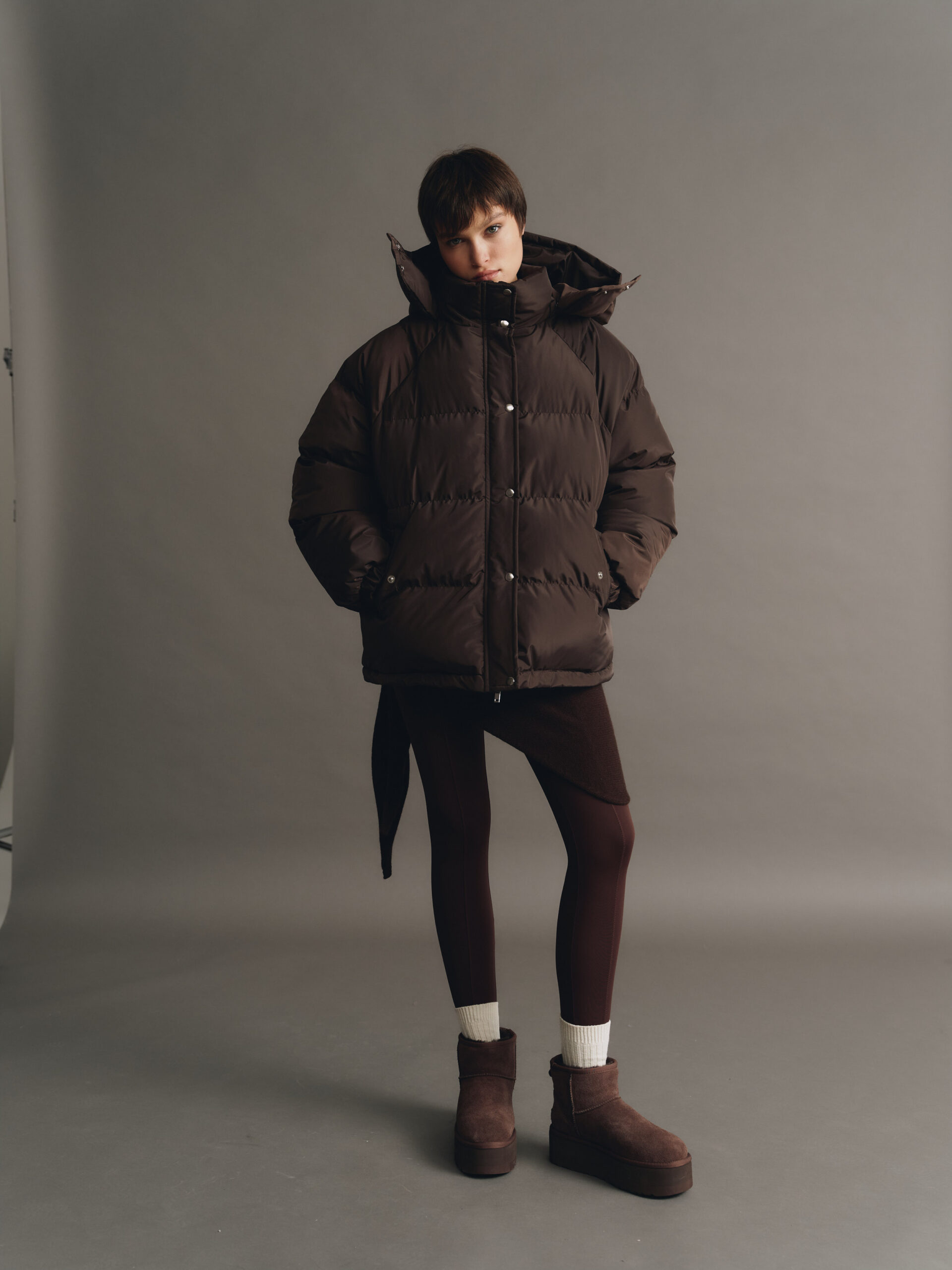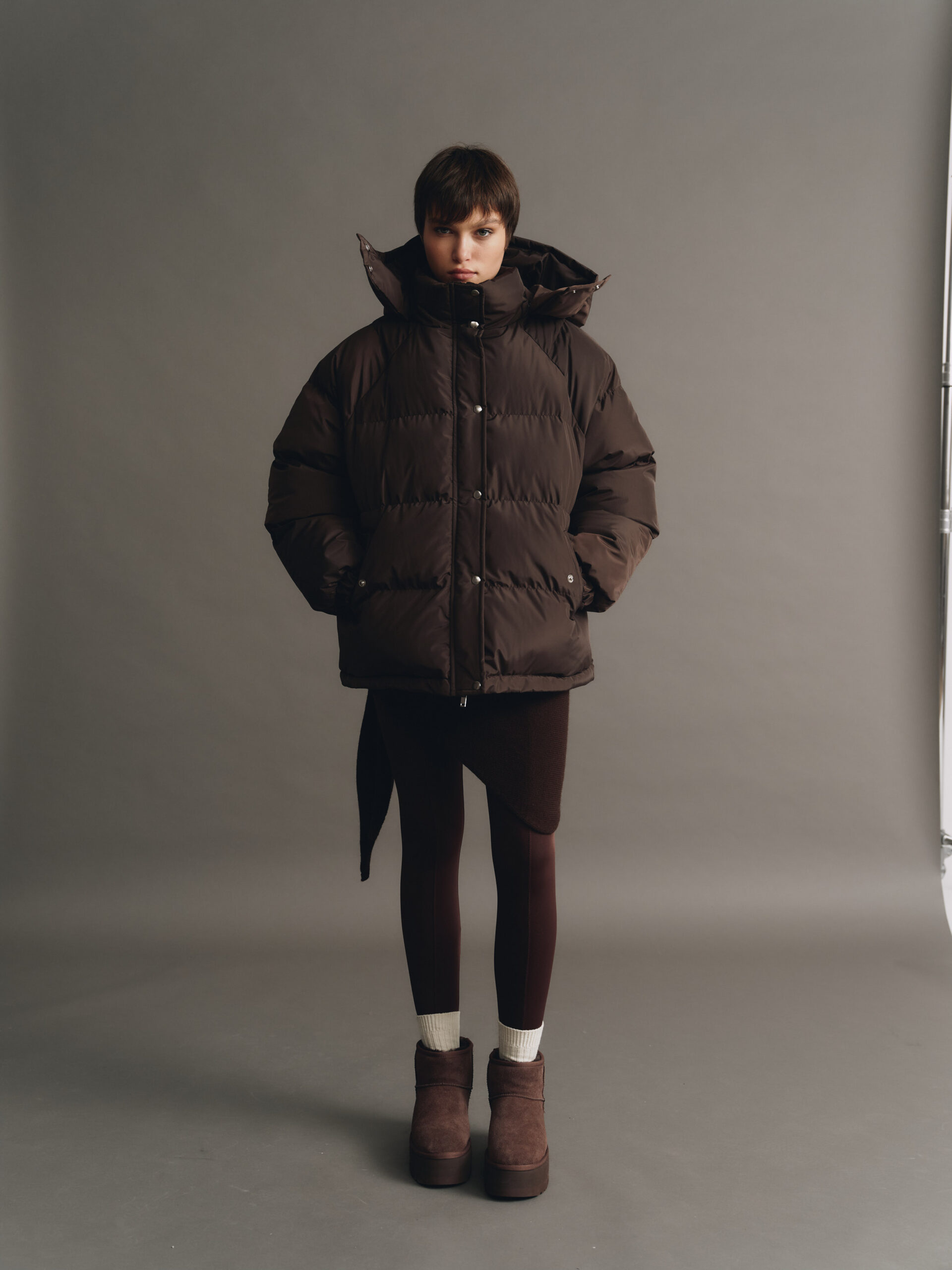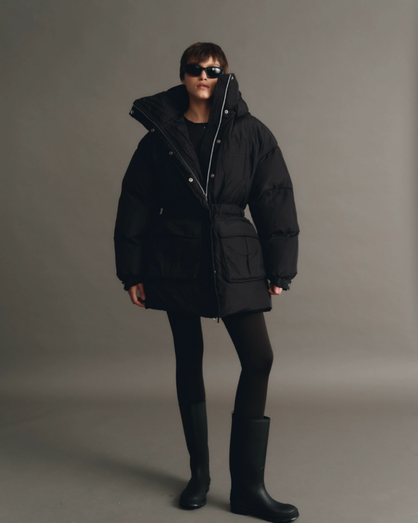Об’ємний пуховик з капюшоном, який відстібається, пуховик на блискавці та кнопках, має дві бічні кишені. Температурний режим -20°C, наповнювач біопух, легкий і теплий, гіпоалергенний. На моделі розмір s/m при зрості 174 см